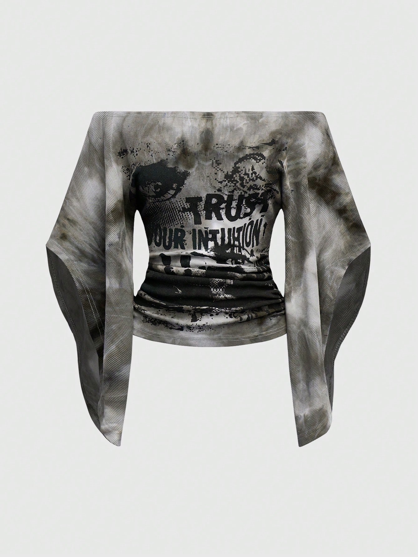Grunge Punk Y2K Wild Babe Vintage Sexy Off Shoulder Tie-Dye Eye Print Women T-Shirt