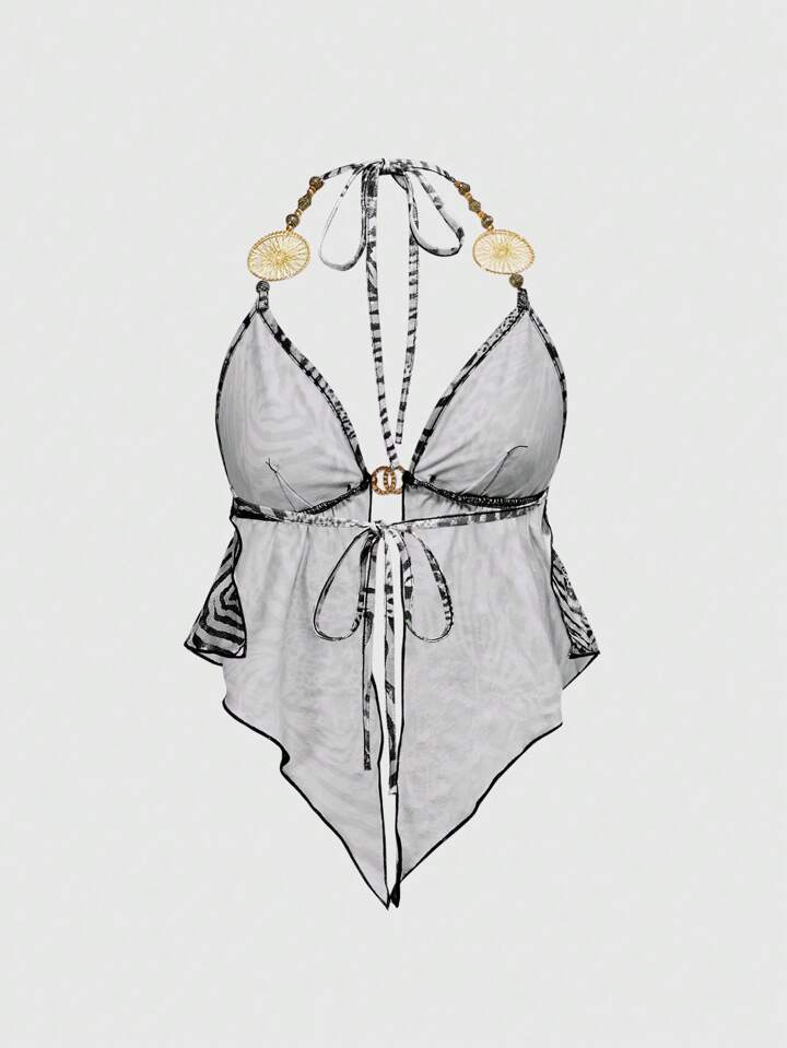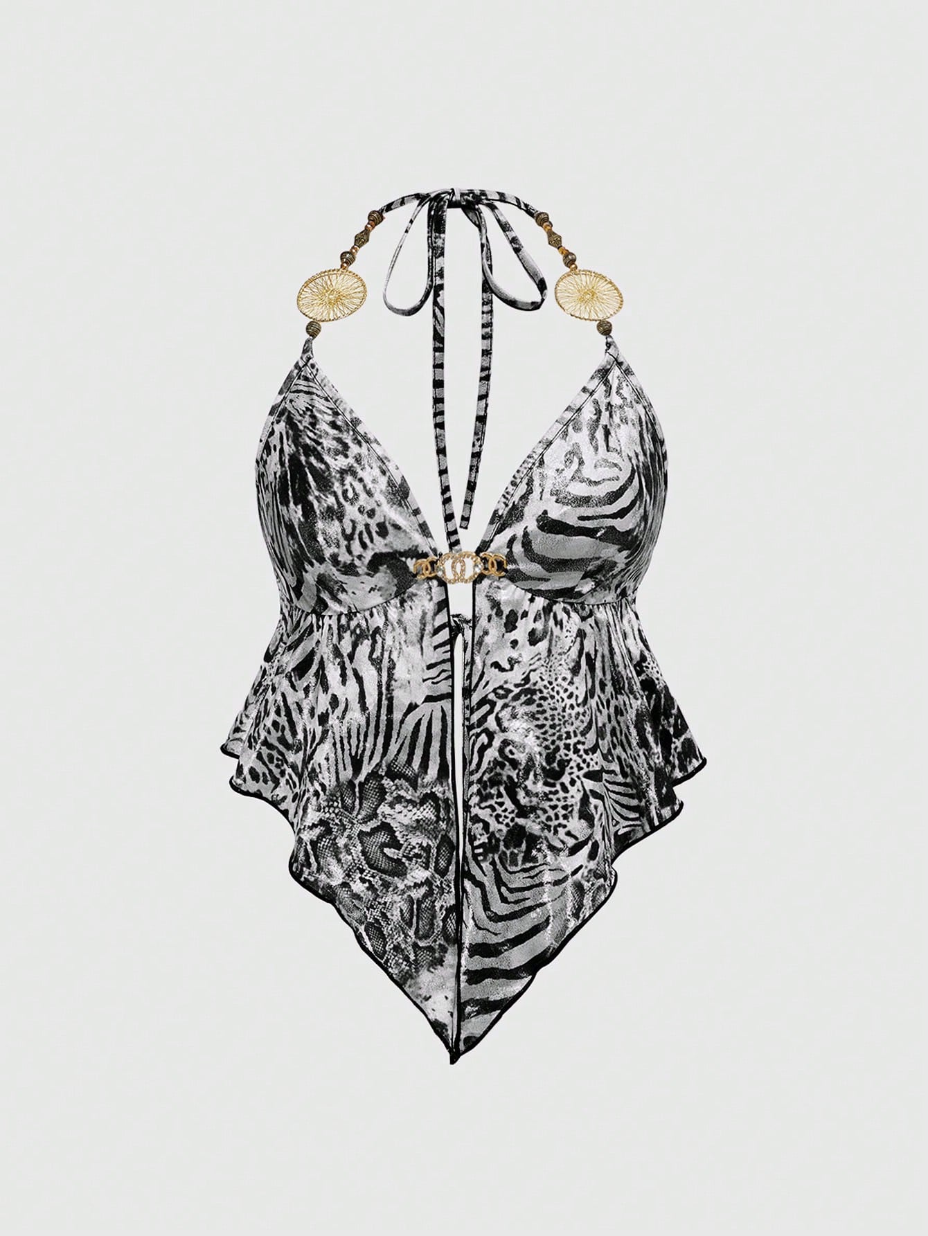 Y2k Hippie Leopard Print Metallic Inverted Triangle Hem Camisole