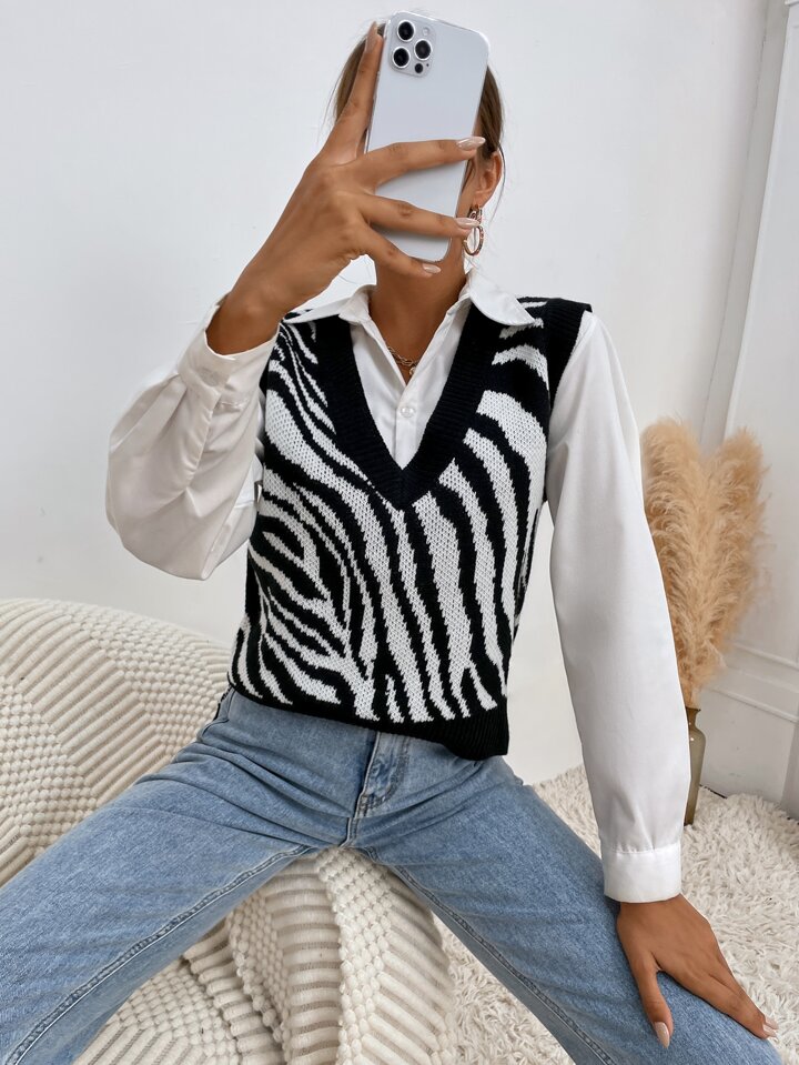 Zebra Stripe Pattern Sweater Vest Without Blouse
