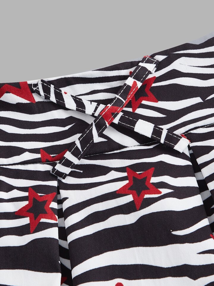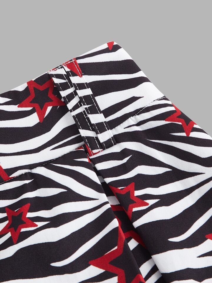 Zebra Striped & Star Print Pleated Skirt Without Belt & Garter Belt
