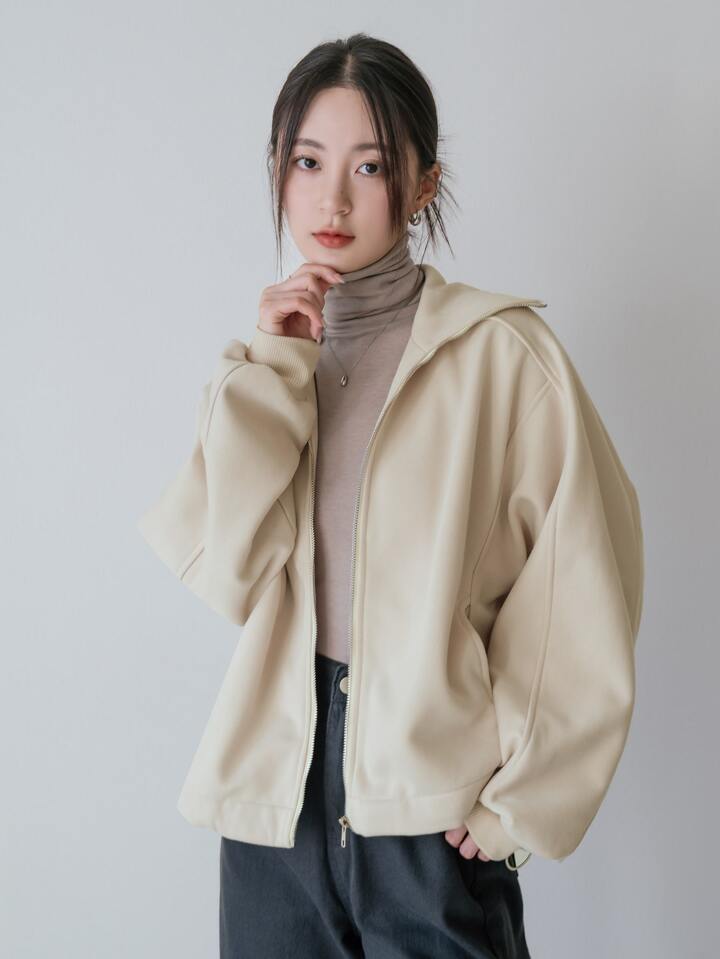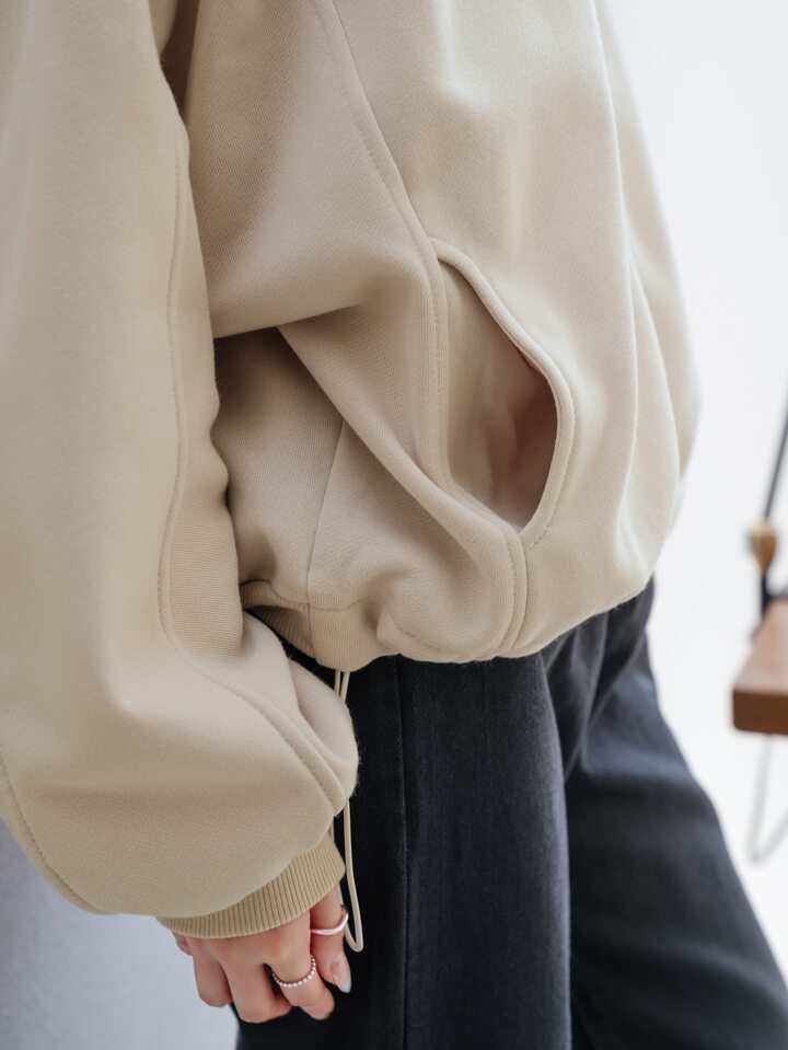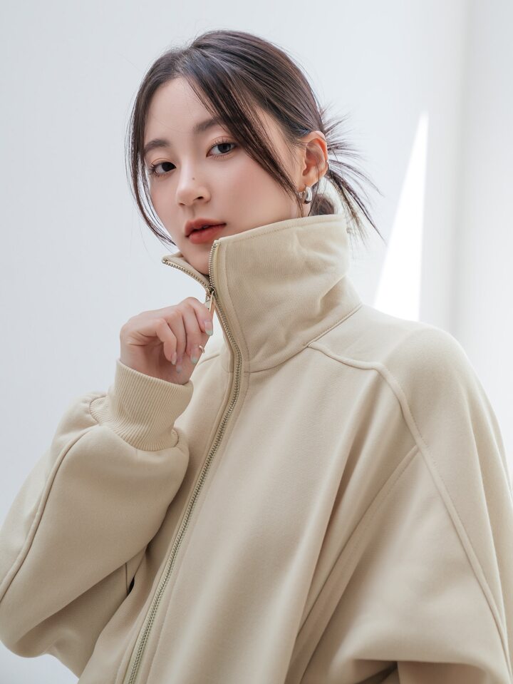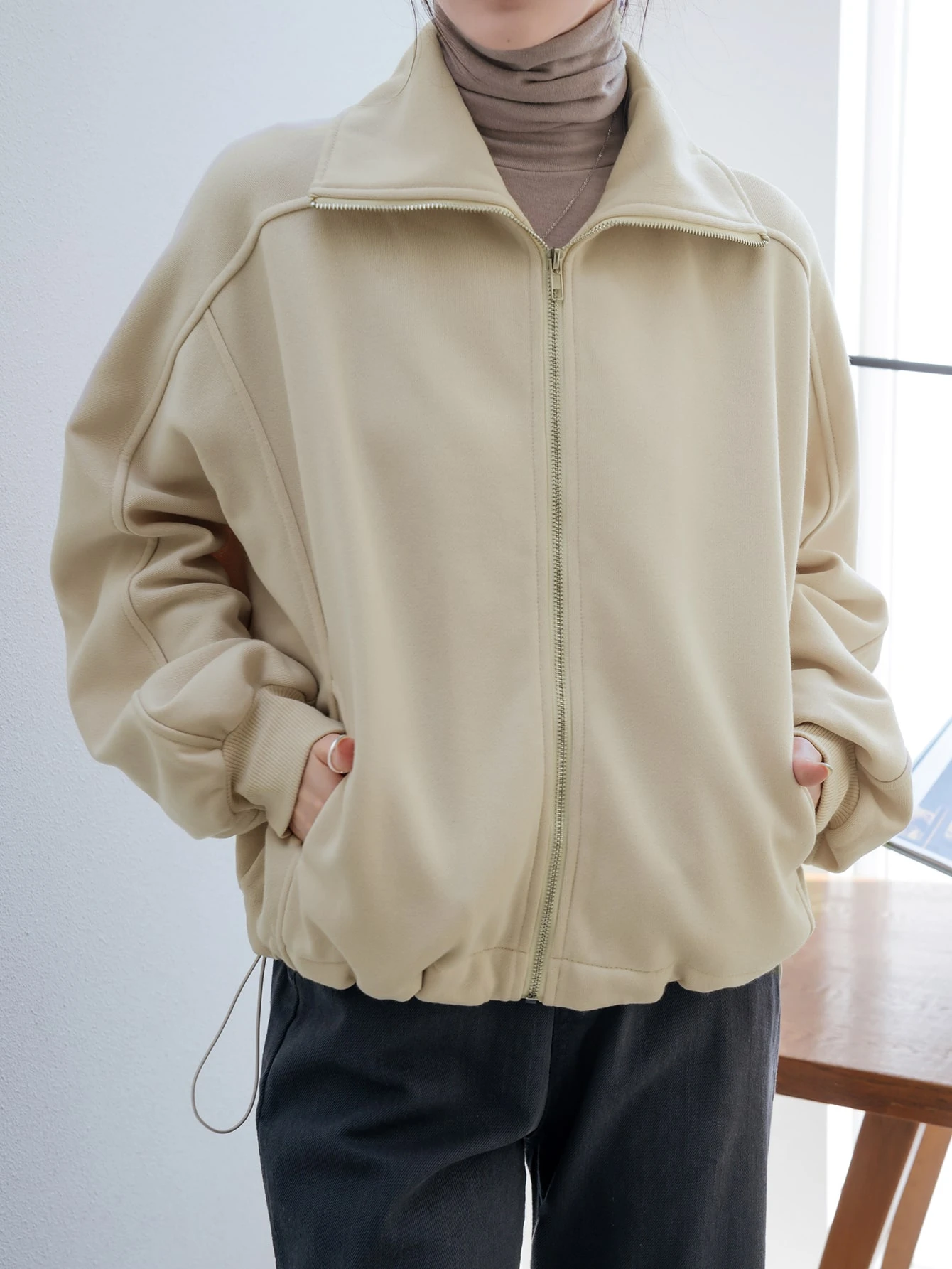 Zip Up Batwing Sleeve Drawstring Hem Sweatshirt