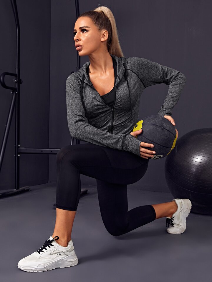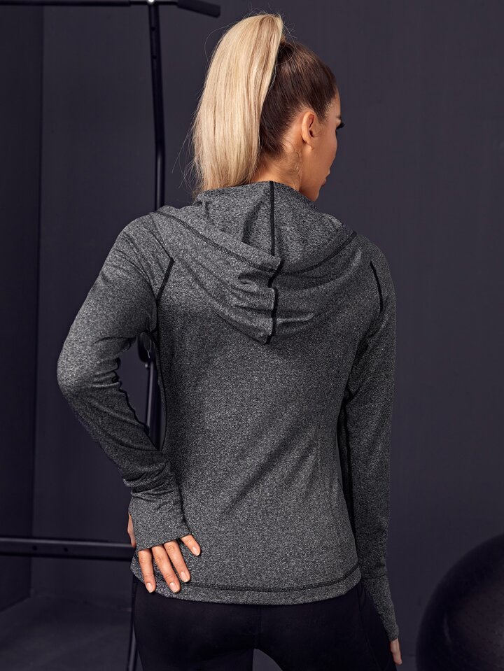 Zip Up Drawstring Hooded Sports Jacket With Thumb Holes