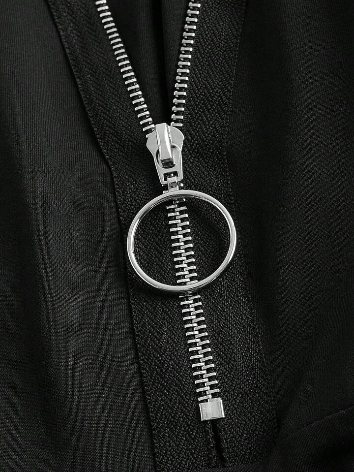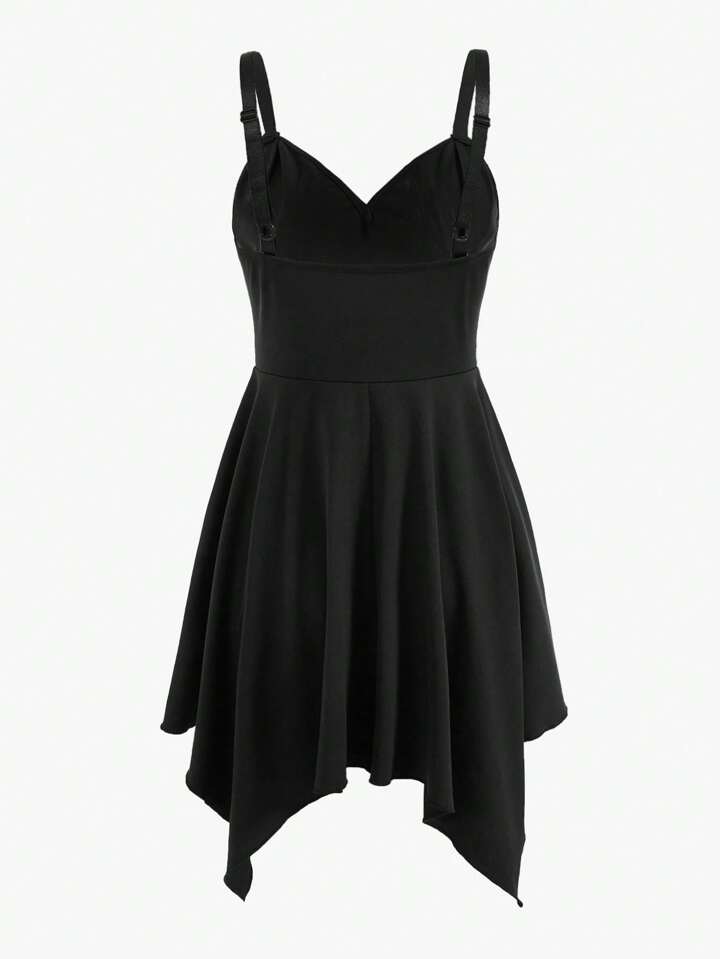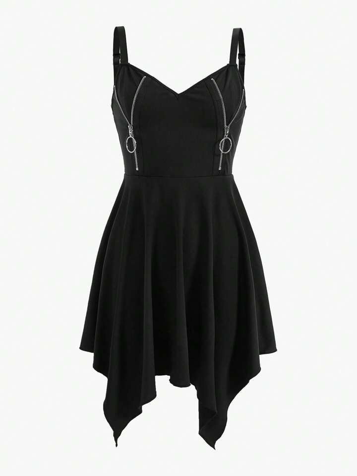 Zipper Detail Asymmetrical Hem Cami Dress