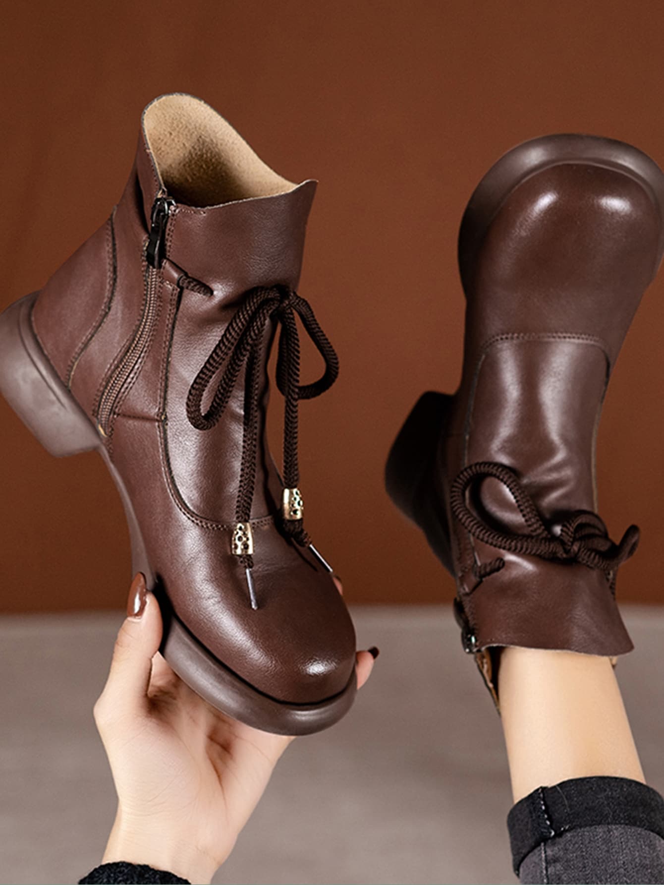 Zipper Side Tie Front Boots