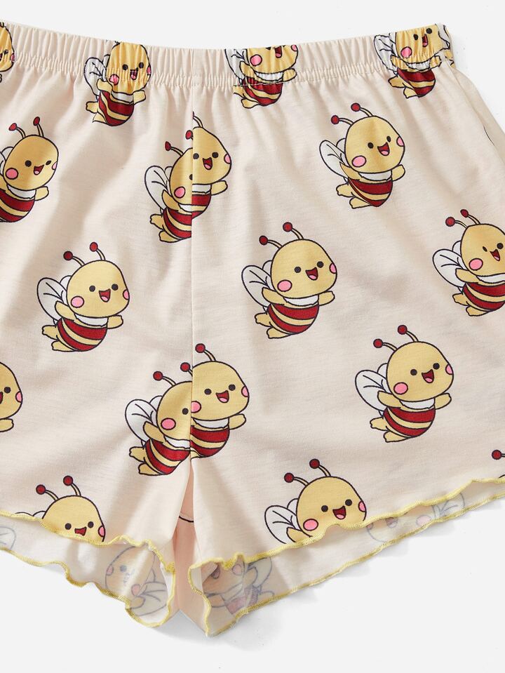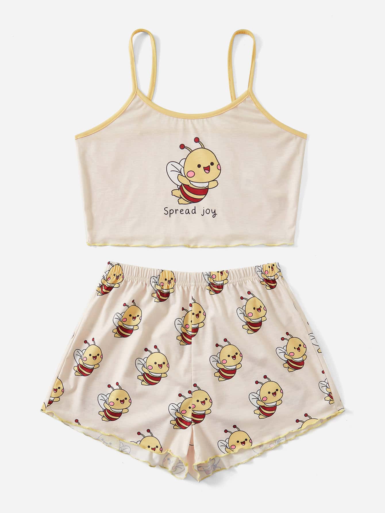 selfcarexpress Cartoon Graphic Contrast Binding PJ Set