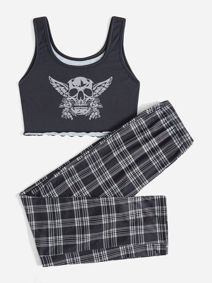 tedcreation Skull Graphic Lettuce Trim PJ Set