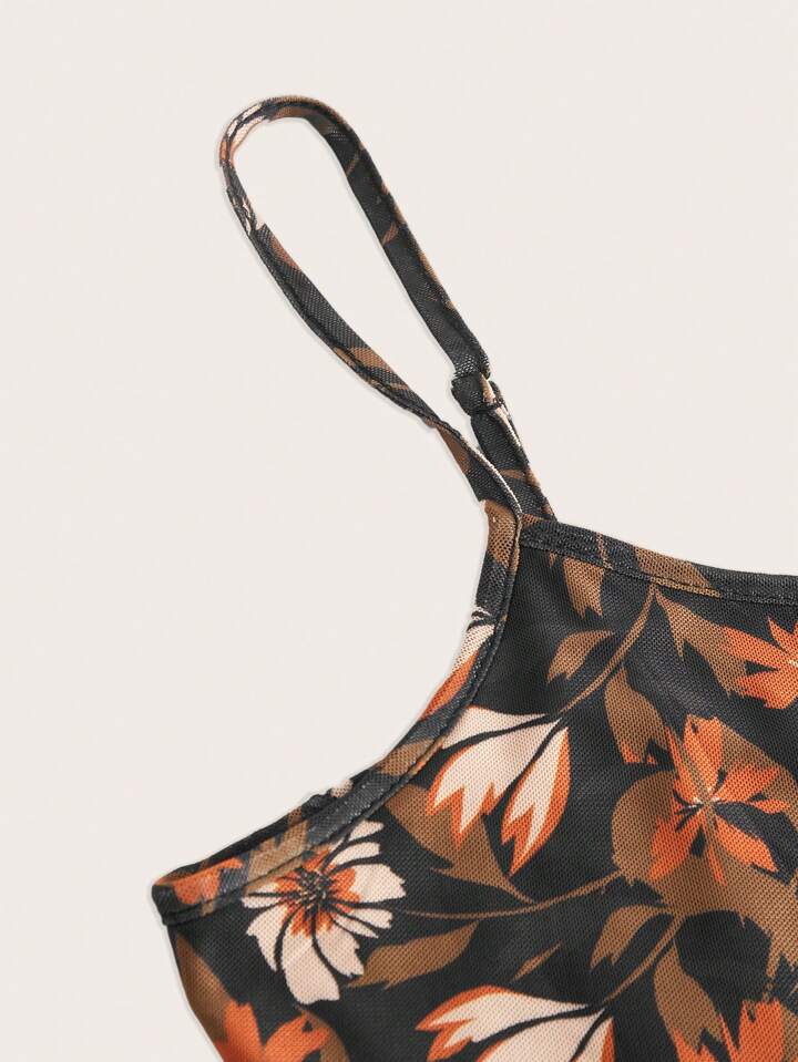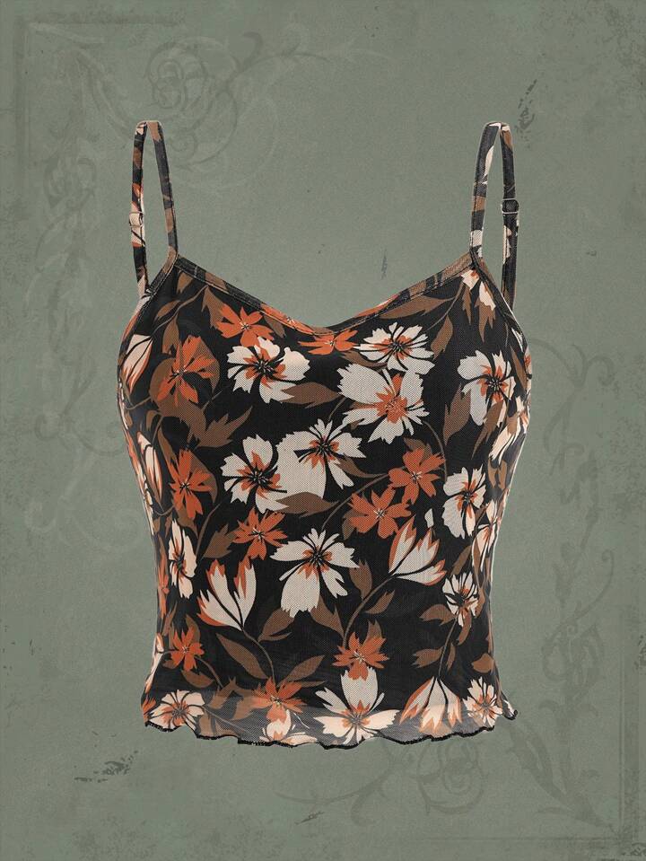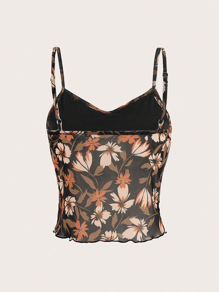 wecouldallbe Floral Print Lettuce Trim Cami Top